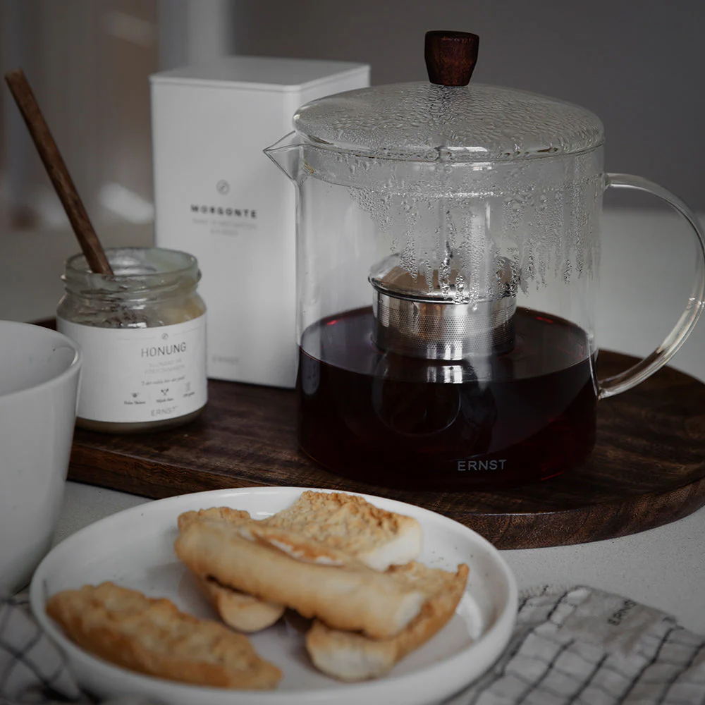 Lade Gäste ein und genieße, gemeinsam mit einem Stück Kuchen, eine schöne Tasse Tee. Die Teekanne ist auch in einer kleineren Größe mit einem Fassvermögen von ca. 1l erhältlich.