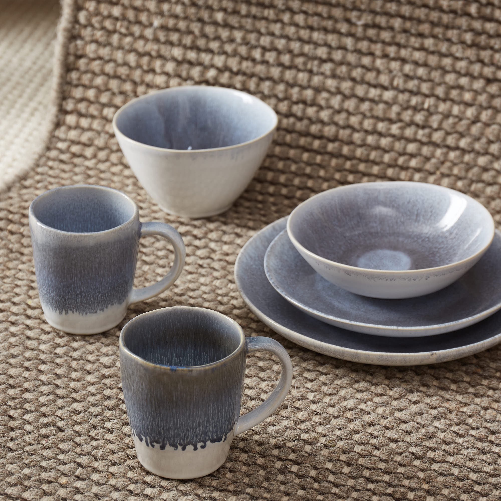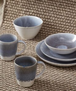 Unsere Geschirr-Kollektion Caima wird in Portugal aus 100% Keramik hergestellt. Die von Hand gearbeiteten Formen und die changierende Krakelee-Glasur können von Exemplar zu Exemplar leicht variieren, wodurch ein charmanter, imperfekter Look kreiert wird. Im Brennprozess entwickelt die Glasur ihre vielen fließenden Farbnuancen, die durch feine Krakelee-Risse aufgebrochen werden. Jedes Stück dieser Kollektion ist somit ein echtes Unikat und bringt einladende Akzente auf den Tisch.