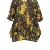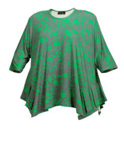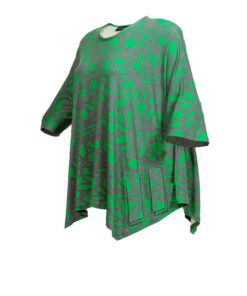 Grün-Pink Gemusterte Jersey-Tunika mit Rundhalsausschnitt und Zipfelsaum