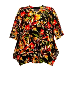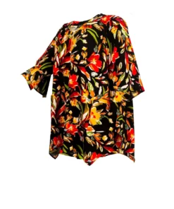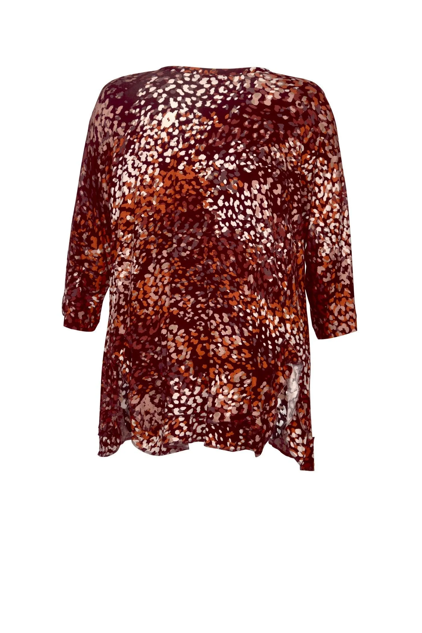 A-Linie, Jersey-Tunika Alloverprint, sehr feminin und edel, leger im Schnitt, 4 Schlitze, Vorne und Hinten. Runder Halsausschnitt, 3/4 Ärmeln