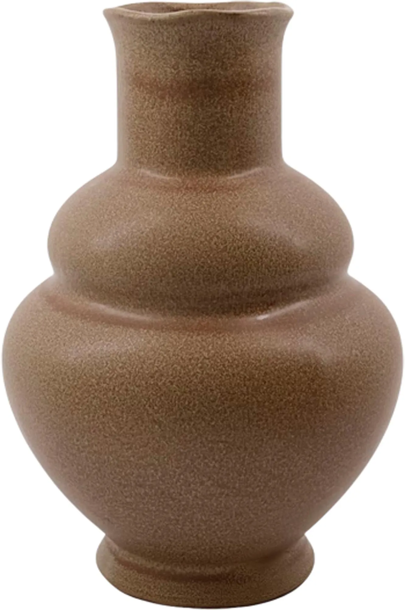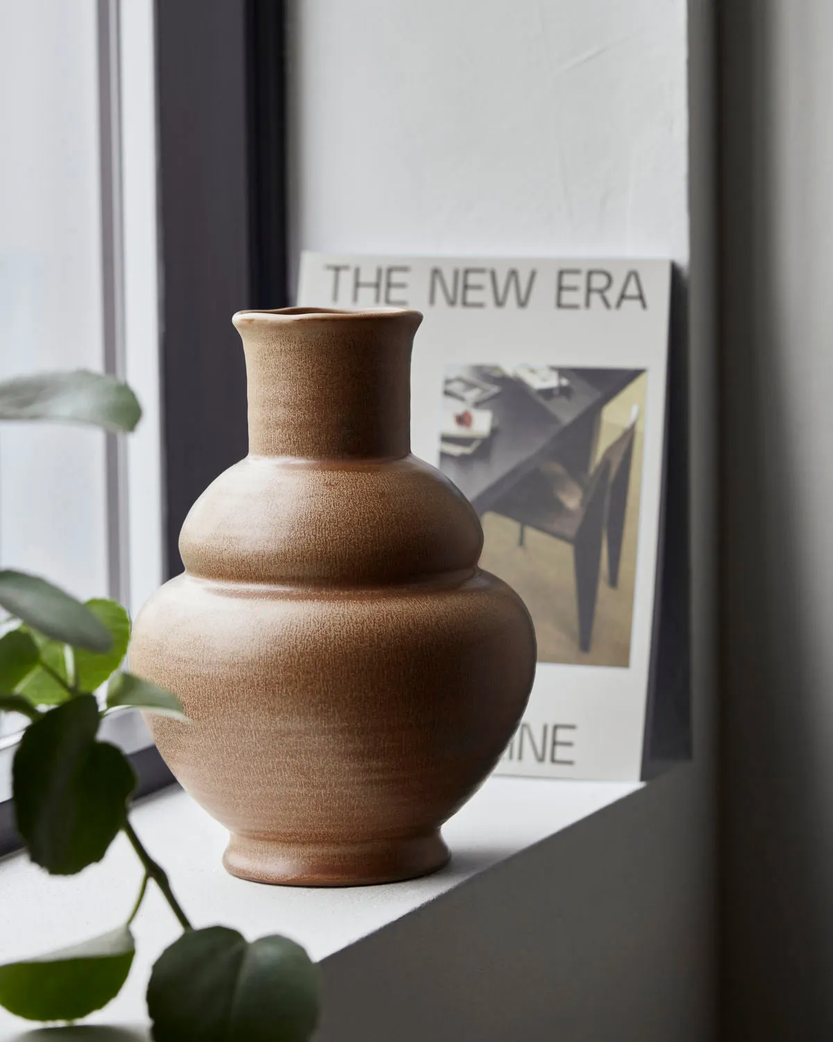 Die Steingutvase wurde mit einer warmen ockerfarbenen Glasur überzogen. Eine neutrale und doch moderne Farbe, die ein Gefühl der Ruhe in deine vier Wände bringt und zu jedem Interior-Style passt.