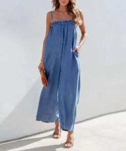 Mit dem Denim-Jumpsuit Wolff sind Sie in aller Munde. Die hochwertige Denim-Konstruktion und die zeitlose Silhouette machen dieses Stück zu einem Must-Have für Ihre Garderobe, das Komfort und Klasse vereint. Mit seinen charakteristischen Seitentaschen sorgt dieser Jumpsuit für einen bequemen und eleganten Look.
