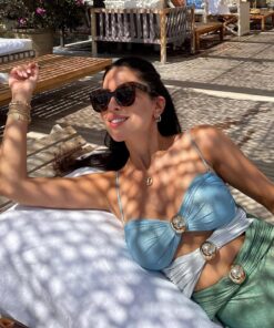 Erkunden Sie das WOLFF im Cut-Out-Stil mit metallischen Einsätzen im Farbblockdesign. Ein modernes und elegantes Design mit mutigen Details. Ideal für diejenigen, die am Strand oder am Pool nach Stil und Charme suchen.