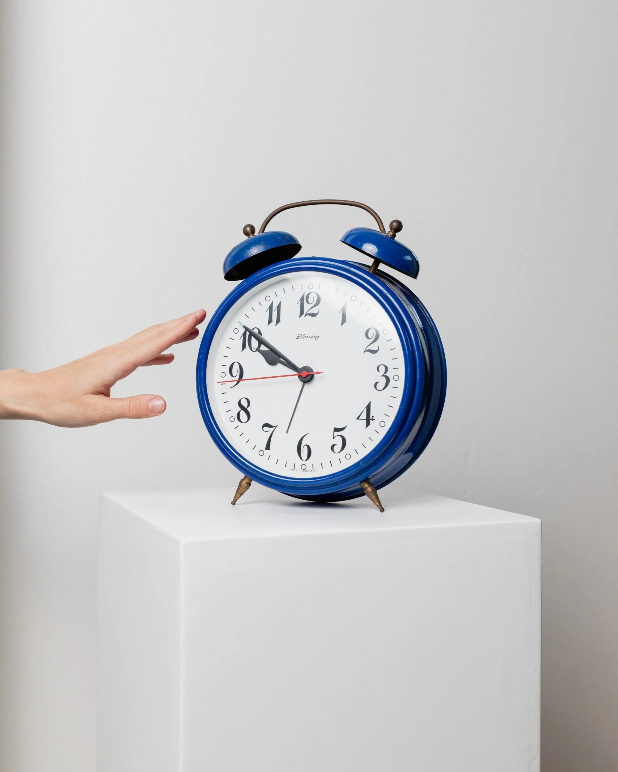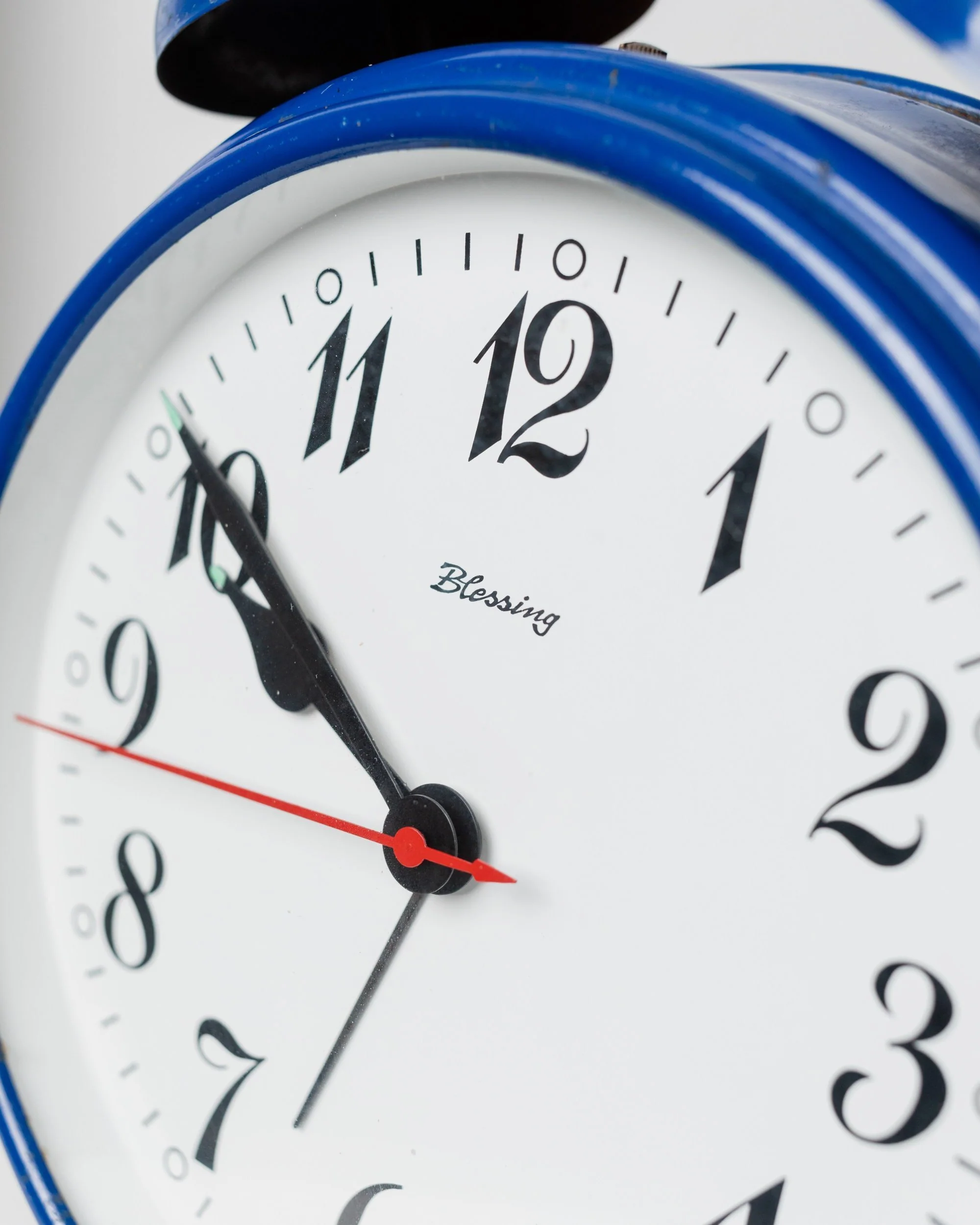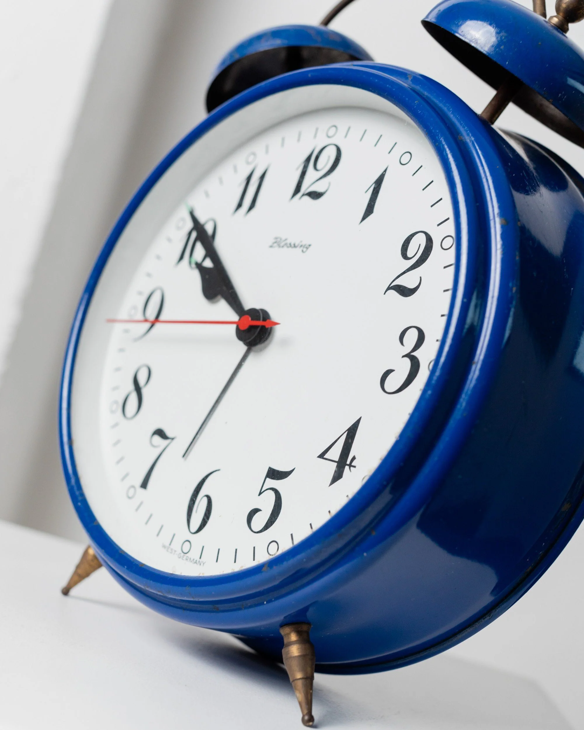 XXL Wecker Blessing blauer Wecker Postmoderne Memphis Style Westdeutschland 1970er Vintage