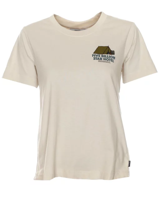 T-Shirt mit Rundhalsausschnitt*Rippbündchen am Ausschnitt*Kleiner Print auf der linken Brust sowie großer Backprint*Softe Haptik*Gerader Schnitt sowie normale Passform*Länge: etwa hüftlang